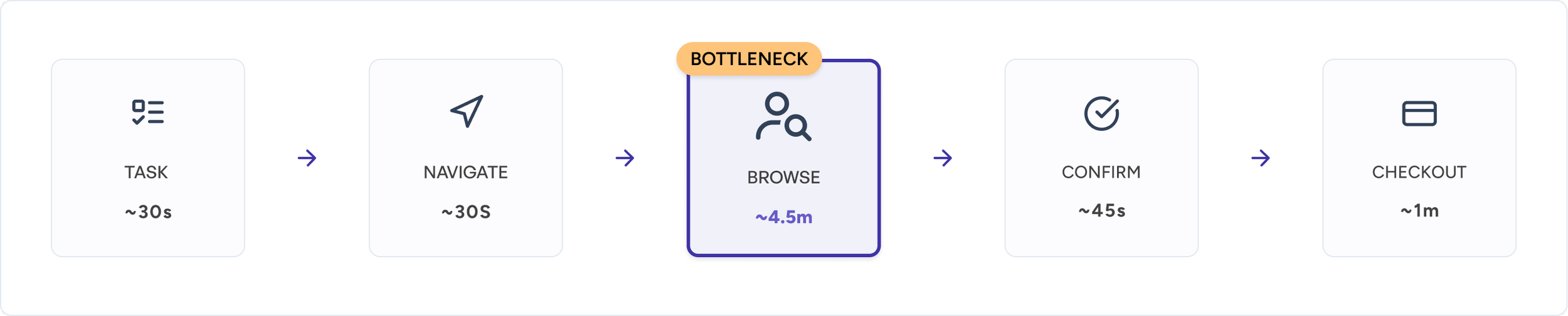 To get the ball rolling, I leveraged partnerships with stakeholders to explore value add opportunities. Utilizing Pendo, I also noticed that users spent the majority of their time (average 4 minutes out of 8 total) in the āBrowse & Selectā phase - not navigating to the storefront, not on product detail pages, not in checkout. To understand the behavioral patterns causing the delay, I conducted mixed methods research: 20+ surveys and 9 in depth interviews and CX call shadowing. I uncoveredā¦